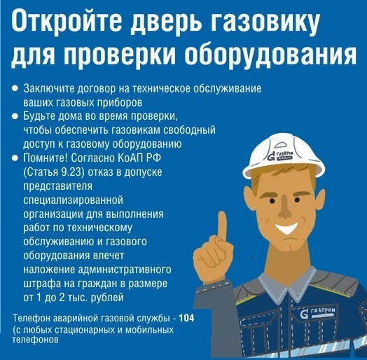 Откройте дверь газовщику, для проверки газового оборудования!